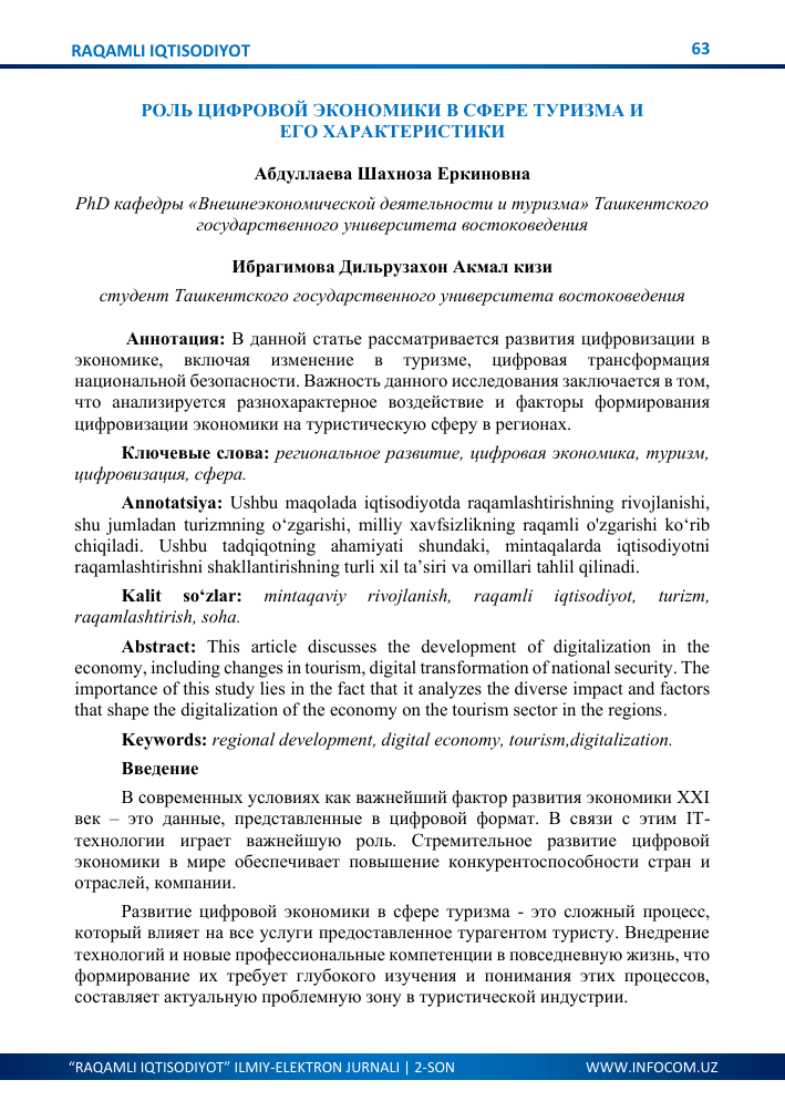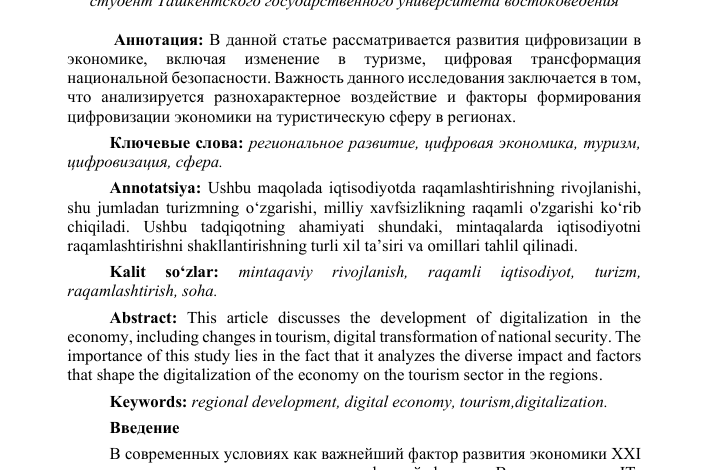 Роль цифровизации в развитии туристической отрасли